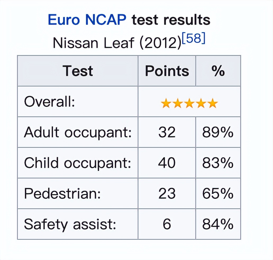 - 欧洲“新车评估计划”(Euro NCAP) 还授予聆风最高的五星级汽车安全评级。