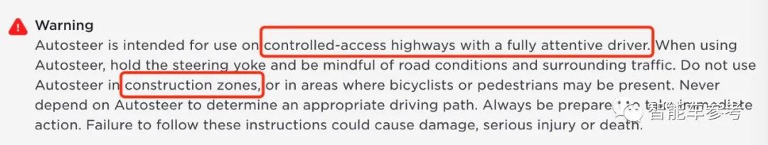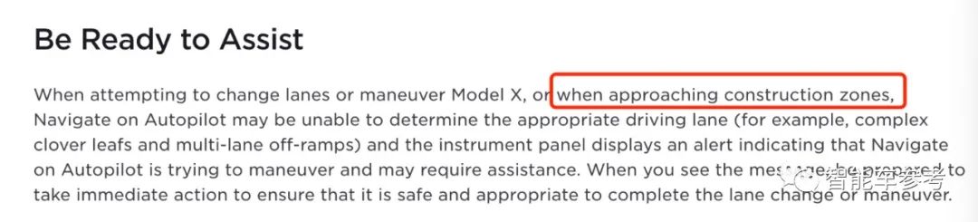 自动辅助变道功能,也是为高速公路上变换车道而设计的,还特别注明了请勿在施工区域或可能有行人的路段使用。