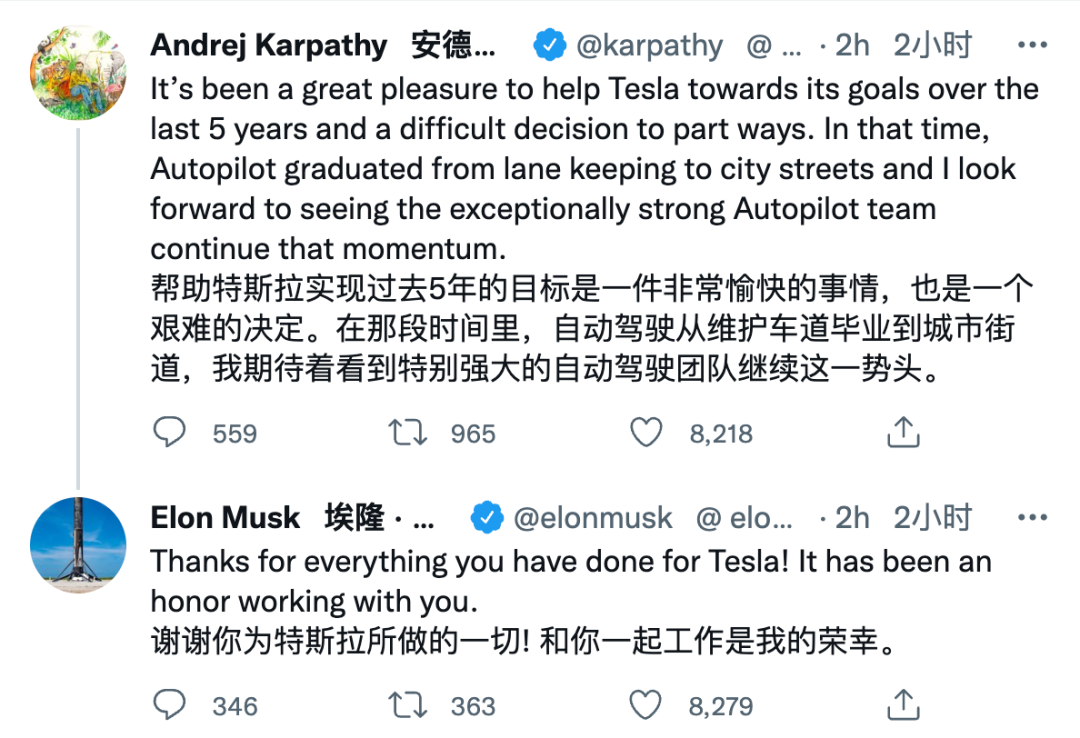 但即便如此,安德烈还是用一则推文告别了特斯拉生涯,并表示接下来还没有明确的工作去向,希望花更多时间在AI、开源和技术教育等方面的事情上。