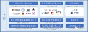 产业链上游以制药数据为核心形成一定体系,大部分公司负责为AI制药企业提供数据库/数据联盟、以及数据处理软件等工具。在这些企业中,具备高通量数据生成能力的智能实验室,逐渐成为数据公司的核心竞争力。