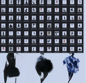 她的创作方式也与人类艺术家相似,先将灵感绘制成大量的手稿,再通过深度图像生成神经网络和服装创作设计模型,逐步将手稿变成高质量的艺术作品。在创作过程中,她还能将服装的款式、色彩、图案、面料效果等元素进行有机的结合。