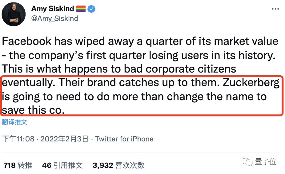 大概谁也料想不到,Facebook母公司更名Meta后首份财报发布,应声而来的竟是美国公司有史以来最大单日市值损失——