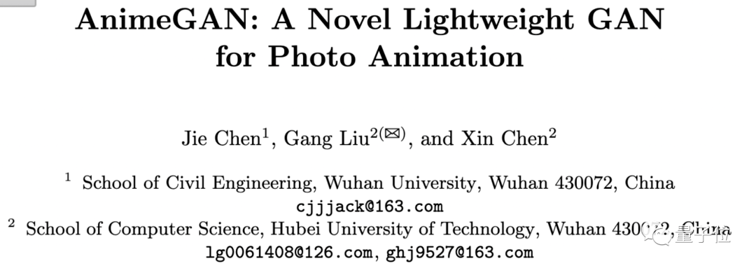 AnimeGAN的原作者一共有3位,分别是湖北工业大学的刘罡副教授,陈颉博士,以及他们的学生Xin Chen。