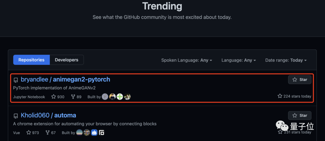 再看看GitHub上的相关项目,果然也冲上了 趋势榜第一名。