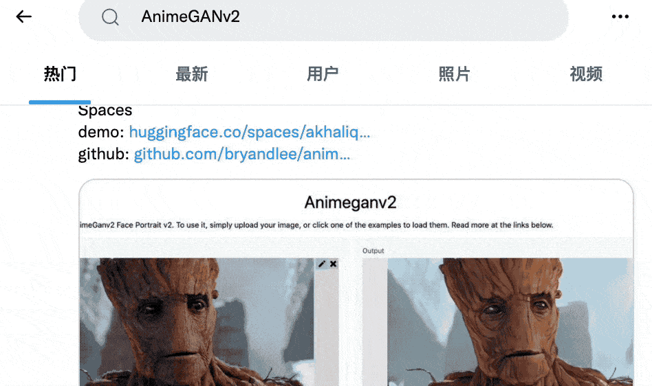 它专门开设了一个在线AnimeGANv2的App,直接把图片“丢”进去就好。