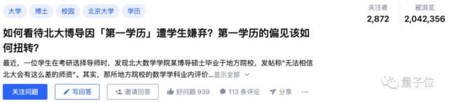 现在,居然有北大的博士生导师被学生歧视第一学历不够好,“不想跟了”。