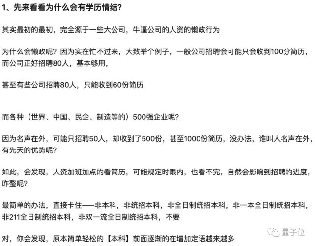 从一开始招聘公司人资的“懒政”行为,到“本科”一词前面加上越来越多的定语。