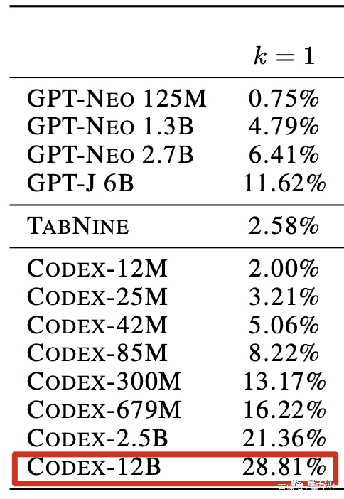 最后,120亿参数版的Codex,能对28.81%的问题给出正确答案。