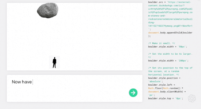 第二步,“石头”搞里头,同样输入一句话,让它“从天而降”: