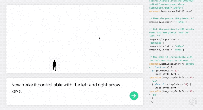 AI在理解了需求之后,自动编程,然后小人儿就真的可以左右移动了。