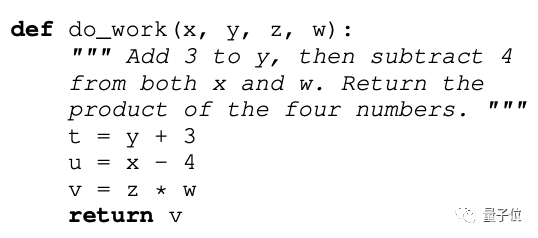 在这个例子中,120亿参数版的Codex,忘记了对变量w做减法,也没有返回所有数字的乘积。