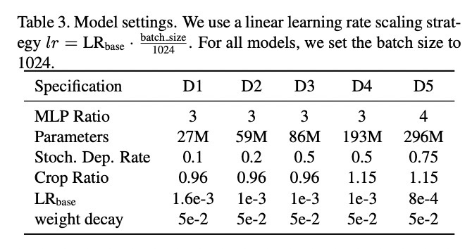 研究人员配置了五个不同大小的VOLO变体,各参数如下: