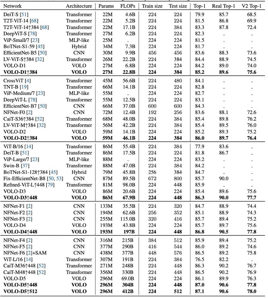 这不,最近一个叫做VOLO的Transformer变体,自称打破了这个僵局: