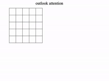 由于注意力权值是从中心token生成并作用于邻居token及其本身(如黑框),因此研究人员将这些操作命名为outlook注意力。